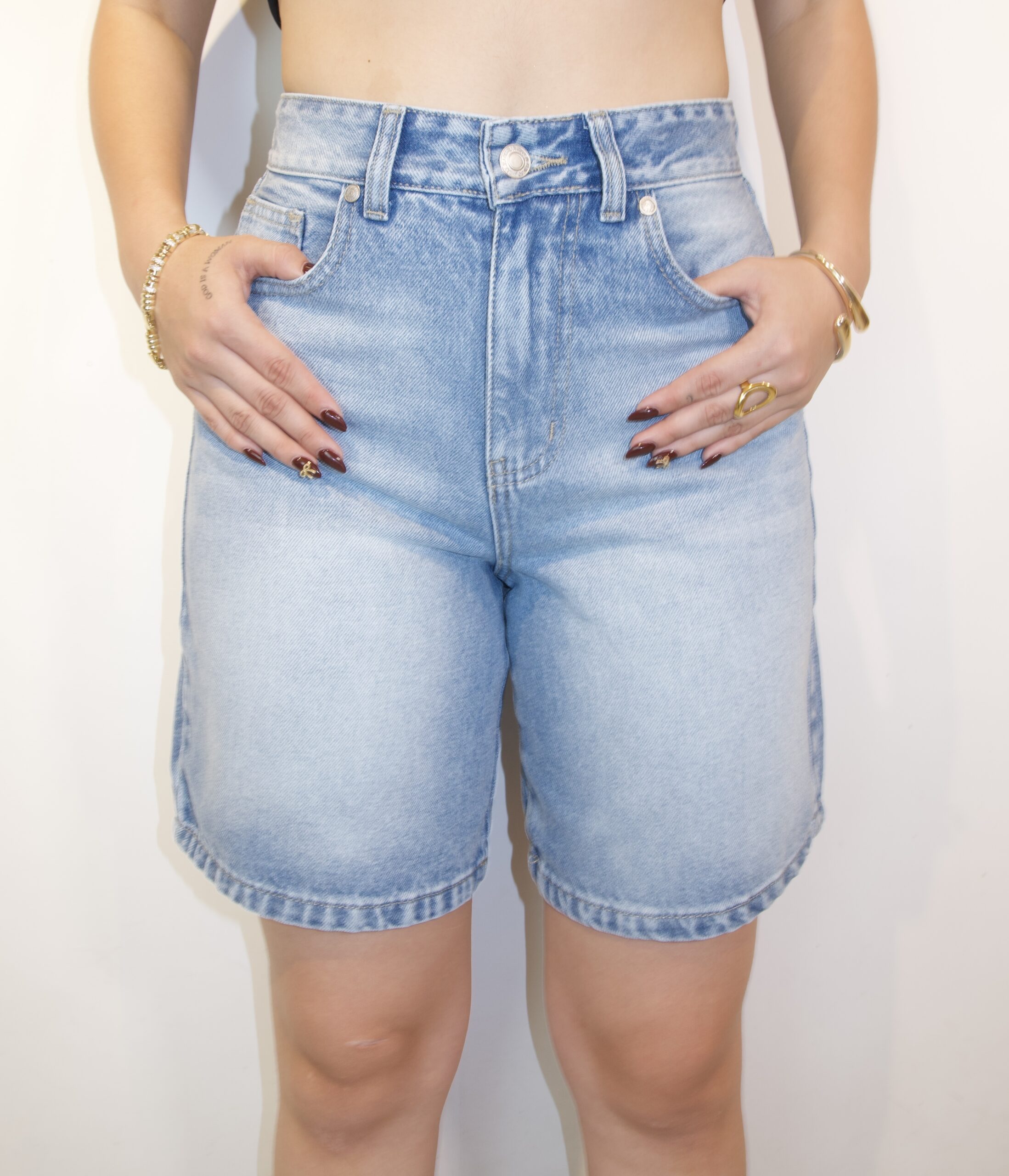 Bermuda en tela rígida y tiro alto. Corte recto y cómodo.