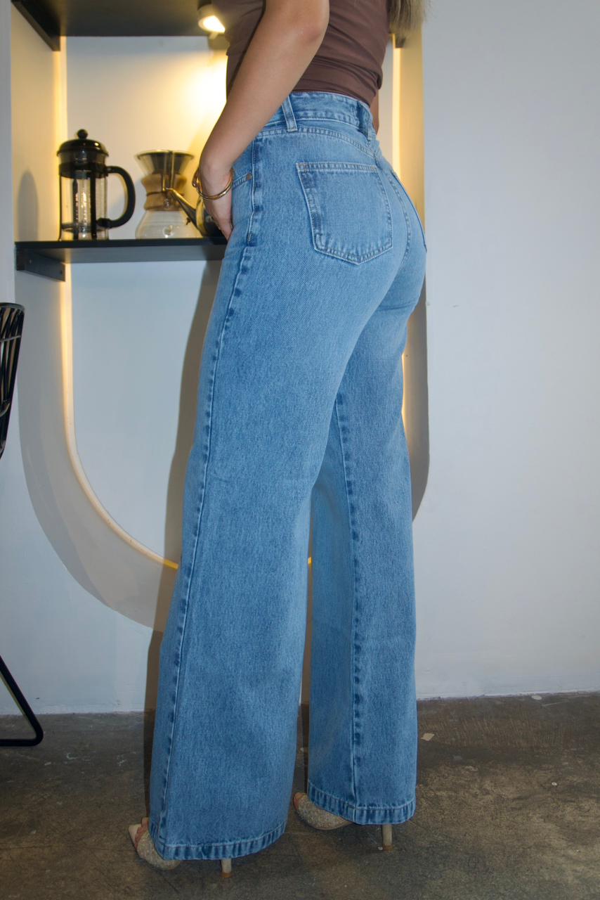 Palazzo en tela rígida y tiro alto. Corte acampanado en bastas.