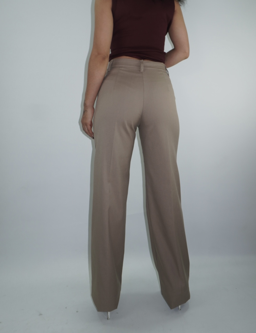 Pant tela Casimir, tiro alto, corte recto. Estilo elegante y formal