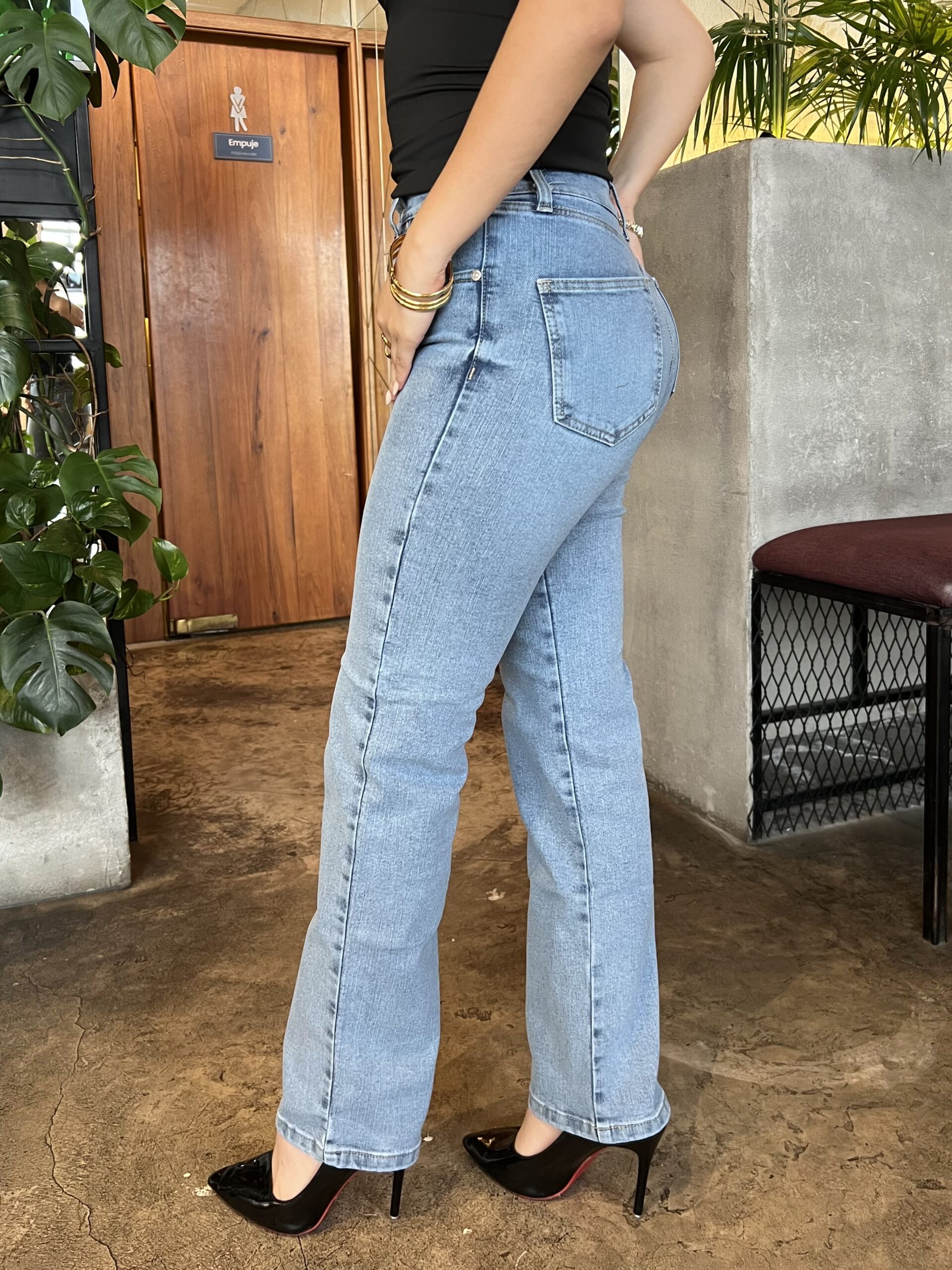 Slim Fit en tela stretch 100% algodón , corte semitubo y tiro alto.