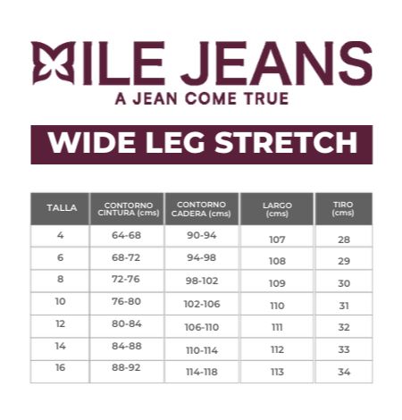 Jean recto, ancho en bastas, tiro alto, color azul oscuro, tela stretch 100% algodón, pierna holgada y larga.